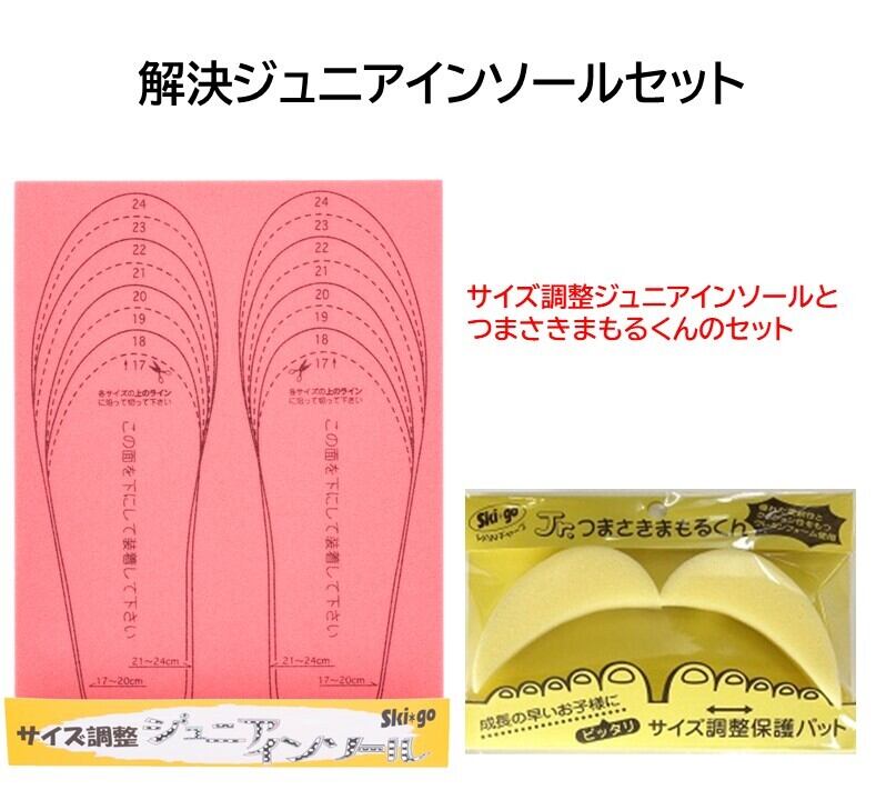 サイズ調整するジュニアインソールとつまさきまもるくんのセットです